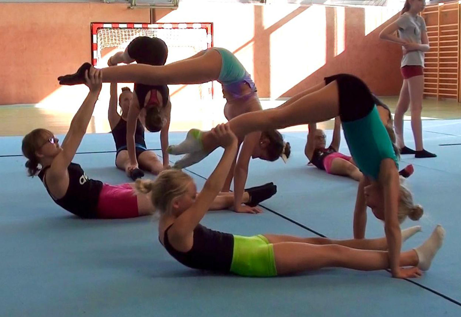 von Choreografie über Dehnung bis hin zu Salto-Vorbereitung, Tumbling, oder Krafttraining.