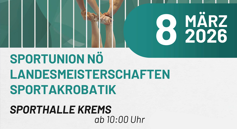 Am 8.3.2026 findet in der Sporthalle in Krems die Sportunion NÖ Landesmeisterschaft statt. Beginn: 10:00 Uhr